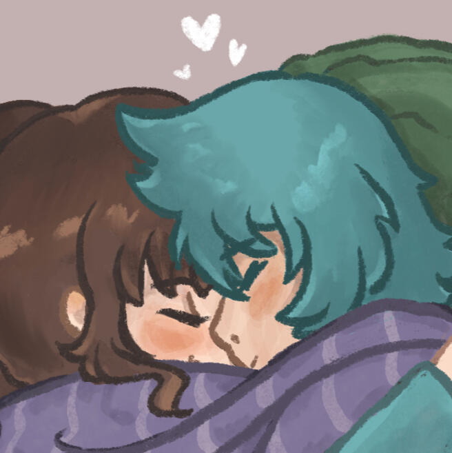 This verse is my "canon" with Shin and I, and the one I refer to most when I talk about us.In this verse, Shin lives with his parents as an only child and does not know Kanna, who was raised with the Kizuchis. As well, I tend to agree with this headcanon timeline of birthdays/events (some spoilers for YTTD in the link), so Shin is two and a half years younger than Emmy. The death game does not/did not occur in this timeline.Emmy works at a general arts and crafts store. A few months into her job, Shin was hired as well.Generally they were on opposite schedules, with Shin working nights and Emmy working mornings, except for an all-nighter shift shared once a week when new products have to be unloaded. They bonded quickly over a similar sense of humor and exhausted solidarity over working a retail job. Both of them are in general a bit lonely, and a friendship sparked that carried them both through rougher days.Shin was not a great worker when he started. Not that he never tried, but he was less concerned at leaving things half-done, or sorting things half-heartedly. At first Emmy was a little frustrated with him and his carelessness while working, but as they started to become friends (and she complained about the slack she constantly had to pick up on co-workers' behalfs), he made an effort to start lightening the load a bit more for her.In turn, it was Emmy he normally went to when he had questions or was unsure about something. When their schedules happened to overlap, both of them seemed to enjoy their time there a bit more. Emmy helped him with heavy lifting and her knowledge of what went where in the store, and Shin helped her with the more computer-oriented aspects, like label printing and managing the online orders. They quickly became a good team.Shin would usually back out of a job within a year at most, often within a few months, but this time he found himself wanting to stick around, maybe just a little while longer.As for why he changed his schedule availability to work mornings with her instead, well, that was a coincidence. It was just because there were typically less customers in the morning, and customers were a pain to deal with. That's all.Their crushes were mutual almost from the start, and in both cases, those feelings snuck up on them. For a few months they both pined quietly, stealing lingering glances or touches, laughing too much at each others' bad jokes, buying lunch for each other on their breaks. Neither of them believed their feelings could be reciprocated, blinded instead by self-doubt and worry for a good friendship ending badly if anything did happen.It was around Emmy's birthday that Shin finally decided he had to bite the bullet. These feelings weren't going away, but he couldn't just say something to her, how awkward would that be? What if she just impulsively said yes to spare his feelings and regretted it immediately? Emmy was kind, and naive like that. Better, he thought, to just write it out or something.So Shin wrote out a letter—it got way too long, he thought, and so much was scratched out and then crumpled from days of him keeping it in his pocket while he worked up the courage to actually deliver it, but oh, well—and about a week after writing it, after his shift he finally slipped it into Emmy's locker for her to decide what to do with.If she didn't feel the same way, then oh, well. He'd been at this job long enough, and if she hated him now, it was going to start sucking, so he could just quit and move on. Again. He was used to being alone, to unreciprocated feelings. No big deal.He hadn't expected her to come running after him that same day, to catch him at the bus stop and excitedly ask him when he wanted their first date to be.